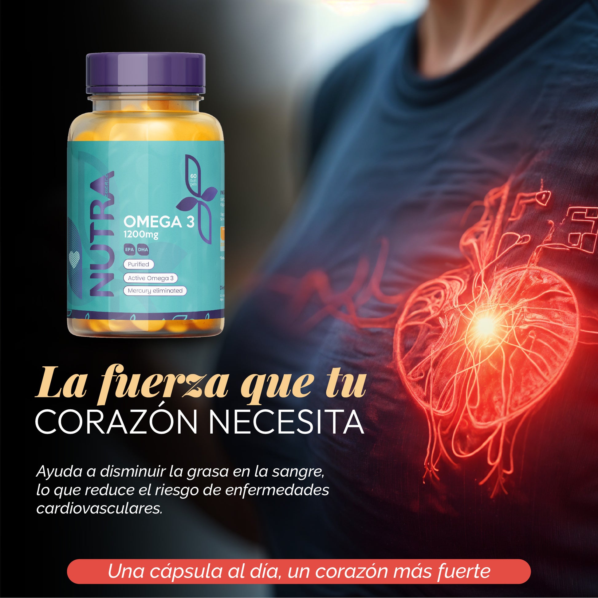 La fórmula de Omega 3 Nutra 1200mg ofrece cápsulas blandas de aceite de pescado purificado, libre de mercurio y fácil de tomar. Ideal para cuidar tu salud sin complicaciones.